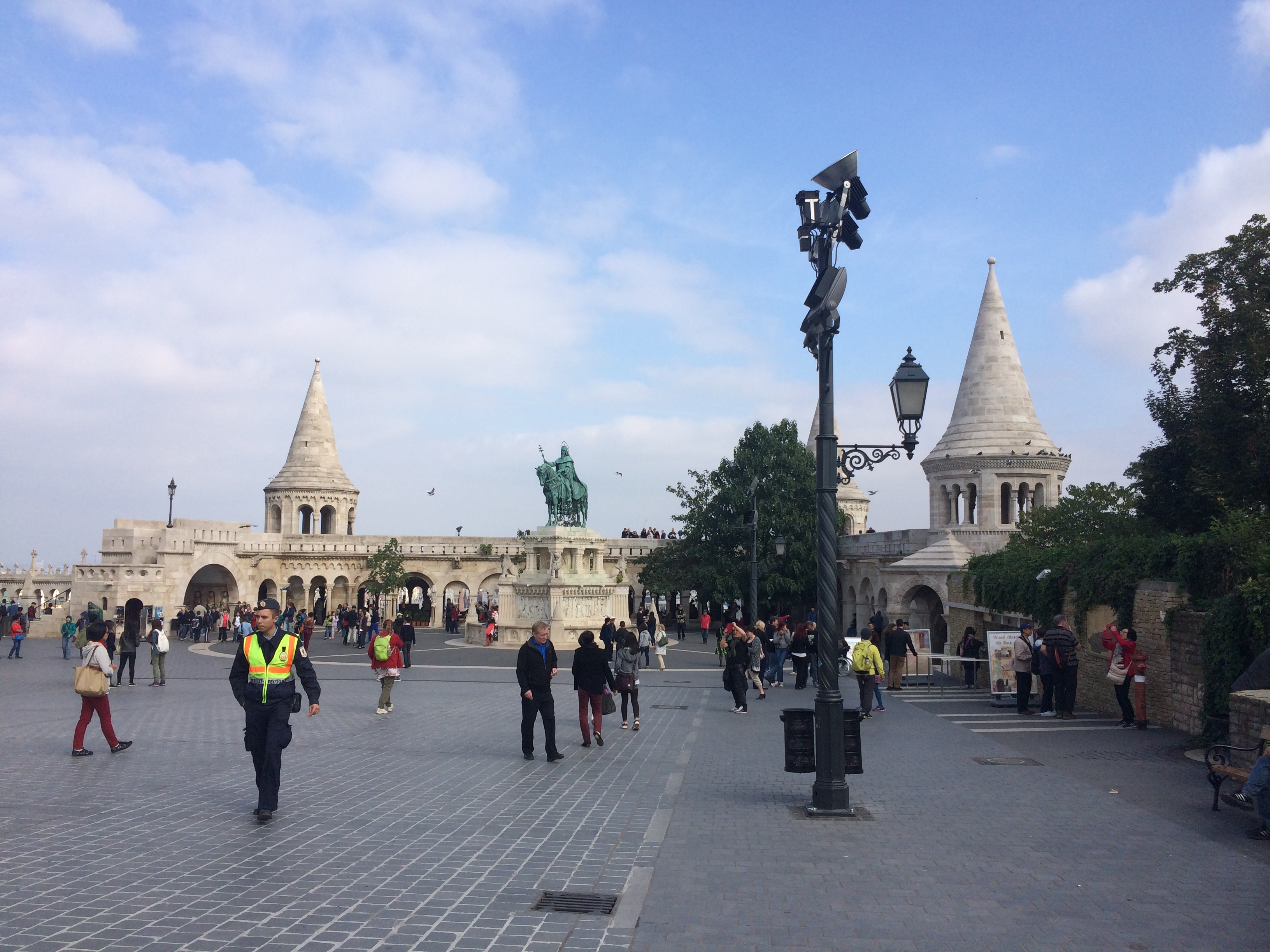If you’ve been following this blog, then you can likely guess what we did our first day in Budapest – a walking tour! This was our first walking tour led by a genuine local, and was all the better for it. Dea not only gave us an overview and history of the city, but interesting anecdotes and insights into Hungarian life. For example, without Dea I may have turned down a shot of Palinka (a traditional Hungarian alcohol) and would therefore be cursed to never find a husband. She told us about the historical connection to the name Elizabeth, a much loved Austro-Hungarian Empress (often referred to as Sissi, her nickname). Sissi loved Budapest, and the locals loved her – enough that parks, bridges and streets have been named for her. We strolled past the statues in Budapest celebrating the every day man, like painters and the paper boy, before crossing the Chain Bridge. This Chain Bridge was commissioned by an influential count after missing his father’s funeral and finished in 1849, is guarded by perfectly carved lions on either side, and was the first bridge built connecting the Buda and Pest sides of the city. Heading up the hill we reached the Matthias Church and Fisherman’s Bastion, an area named for the fish markets as well as the fact that the fisherman were charged with protecting that part of the old wall if it came under siege.